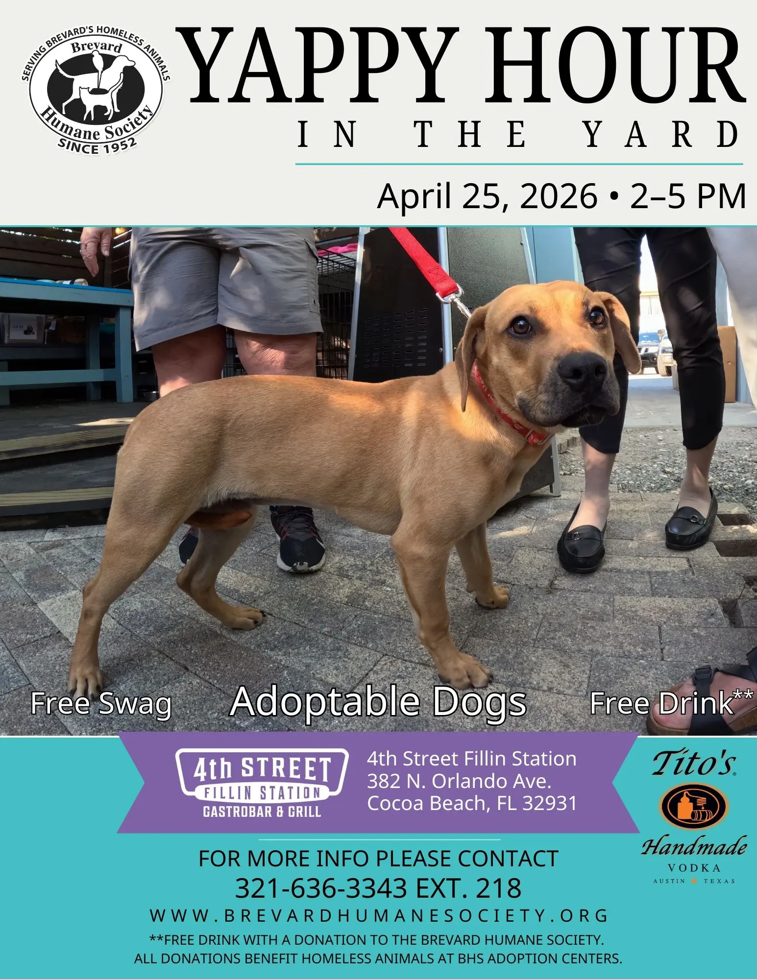 Join the Brevard Humane Society at Fourth Street Fillin Station for ‘Yappy Hour in the Yard’—a paws-itive afternoon of local brews and the chance to meet your new best friend from our Cocoa Adoption Center!